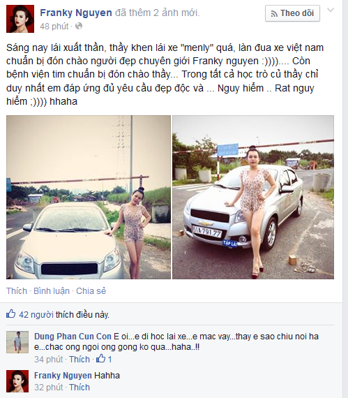![]() Bản sao Hà Hồ khoe chân thon dài bên xế hộp Franky Nguyễn sở hữu một thân hình nóng bỏng và quyến rũ không thua kém "bản chính" Hà Hồ. Franky Nguyễn là một nhà thiết kế chuyển giới hàng đầu Việt Nam, với vẻ đẹp đáng ngưỡng mộ cùng tài năng về thiết kế, thành quả mà cô gặt hái được khiến nhiều người ghen tỵ. Người đẹp từng được mang danh 'bản sao Hà Hồ' dần chứng tỏ năng lực của mình qua những thiết kế, bộ sưu tập được giới trẻ ưa chuộng, cùng với đó là vẻ đẹp ngày một nữ tính, gợi cảm và vô cùng quyến rũ của người đẹp. Tên tuổi của NTK trẻ giờ đây không chỉ gắn với những scandal như khoe vòng một đầy, khoe dáng, phát ngôn gây sốc để hâm nóng tên tuổi... Có thể nói, Franky Nguyễn luôn biết được thế mạnh về ngoại hình của mình nên người đẹp khai thác triệt để sự quyến rũ và gợi cảm trong mỗi bức hình. Và lần này là những hình ảnh mà cô tập lái ô tô đăng tải trên trang facebook cá nhân. Bản sao Hà Hồ khoe thân hình gợi cảm và làn da trắng bên chiếc xe ô tô Sau khi những bức hình được đăng tải, người đẹp cũng nhận được nhiều lời comment, sự quan tâm của mọi người: Trước đây, người đẹp cũng đã có những hình ảnh khoe chụp với xế hộp tiền tỷ do chính mình mua. |